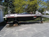 Friend asked me list his 88 19' Starfire on the board for him. He is the third owner since new and the boat is in phenomenal condition. All three owners are freinds of each other and I know all three personnally. Second owner was a very meticulous mechanic. 5.7 Mercruiser 260hp, Alpha drive rebuilt '05, SS prop, Hummingbird fish finder, full gauges, interior has been redone. Motor is extremely strong and has never had any problems. Comes with single axle Chariot trailer. He is asking $8,500.00 but is more than willing to deal, he needs to get rid of this boat. His name is Brian and he can be reached at 781-760-0432. I will try to post pictures.